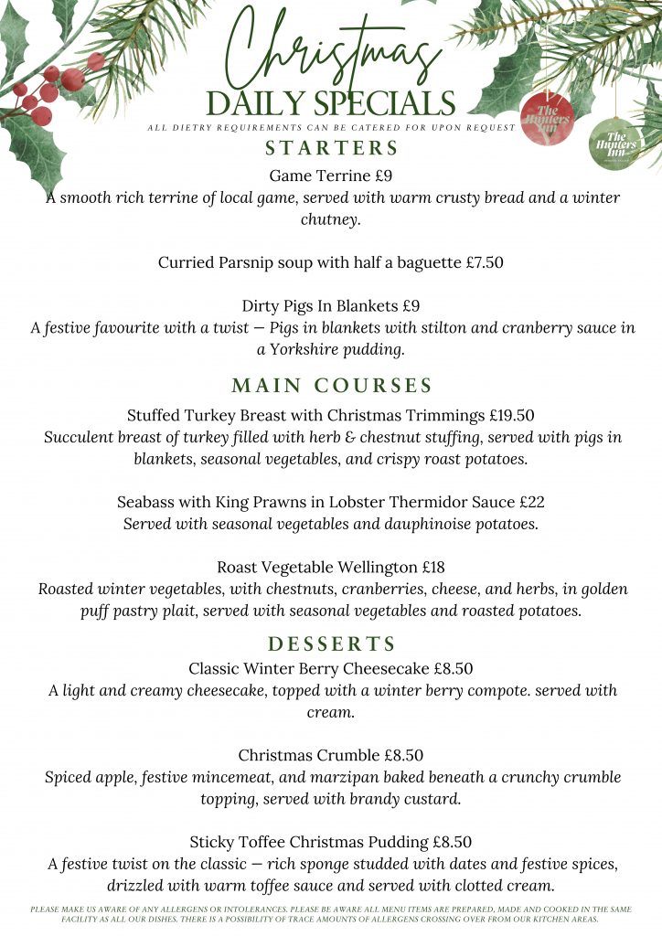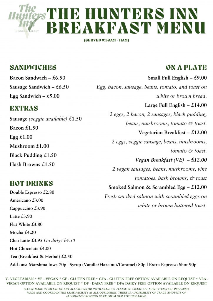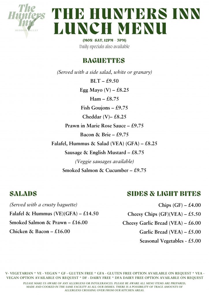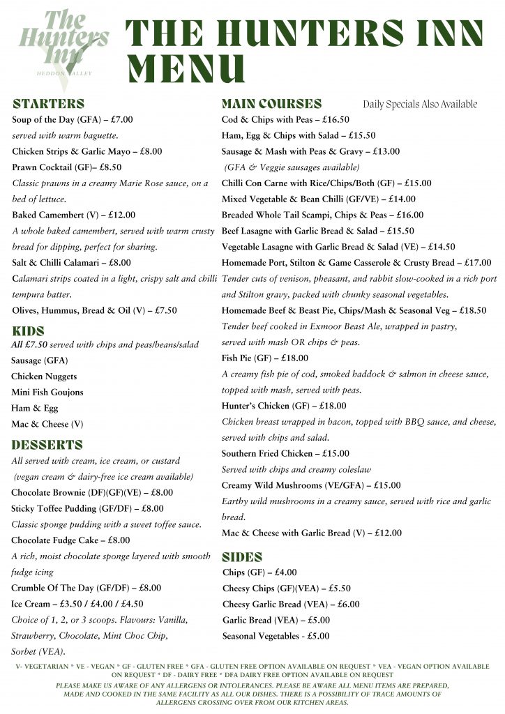 Email: enquiries@thehuntersinnheddonvalley.co.uk